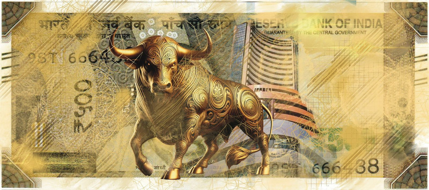This artwork blends the power of the bull symbolizing market growth with the iconic NSE building, representing India’s financial pulse. It captures the dynamic energy of the financial world, reflecting both strength and resilience in the face of economic change.